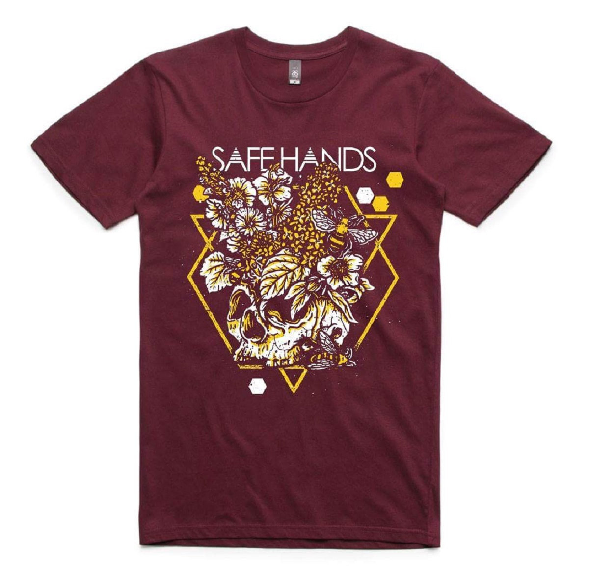 2 colour print on maroon AS Colour 100% cotton tee. Design by Annie Walter (anniewalter.com). Limited sizes only.